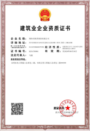 此次成功榮獲市政公用工程施工承包二級資質(zhì),不僅是對公司過往成績的高度認可,更是為公司未來的發(fā)展打開了廣闊的空間。擁有市政公用工程施工承包二級資質(zhì)后,凱邦商貿(mào)有限公司公司將有能力承接更為復雜、規(guī)模更大的市政公用工程項目,以更加優(yōu)質(zhì)的工程和服務回饋社會,為安州區(qū)的城市發(fā)展貢獻更大的力量。